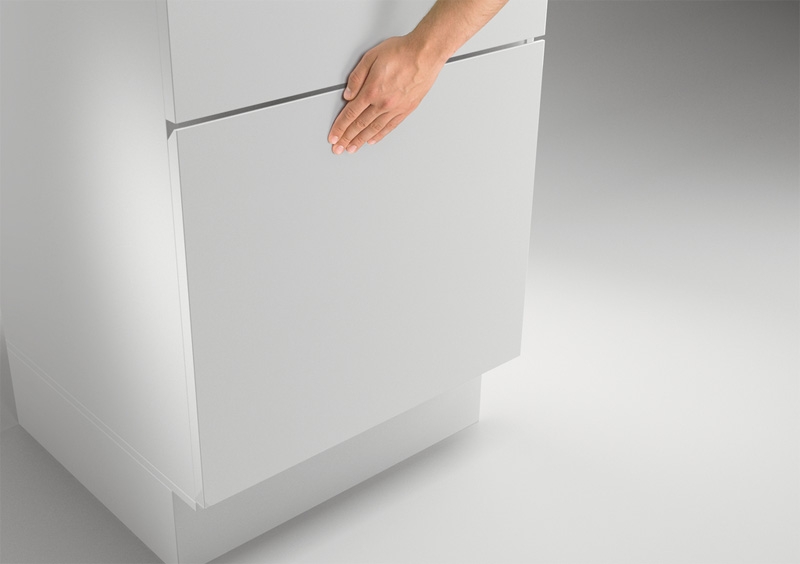 Betätigung des Ausfahrmechanismus durch sanftes Antippen der Auszugsfront