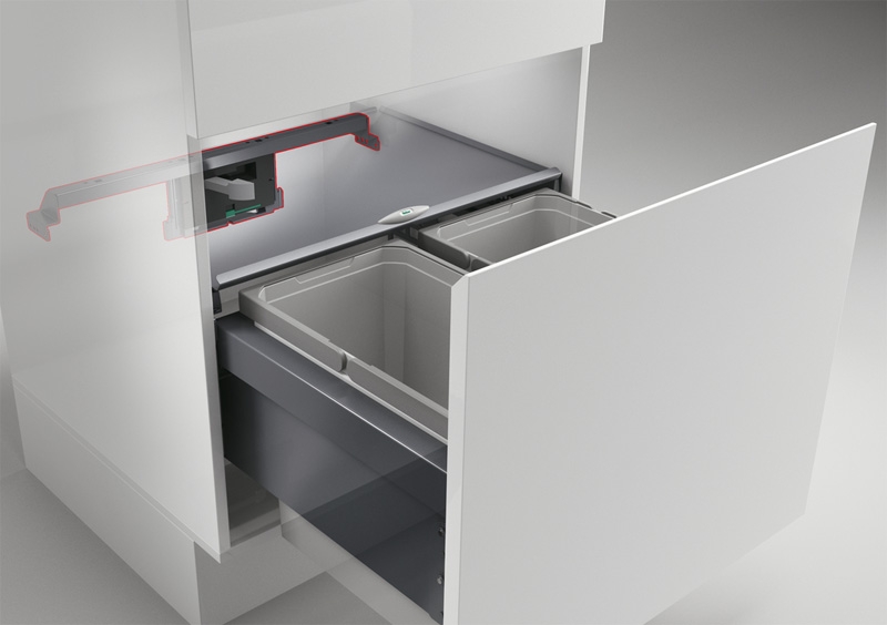 platzsparende und unsichtbare Installation hinter den Abfallsammlern