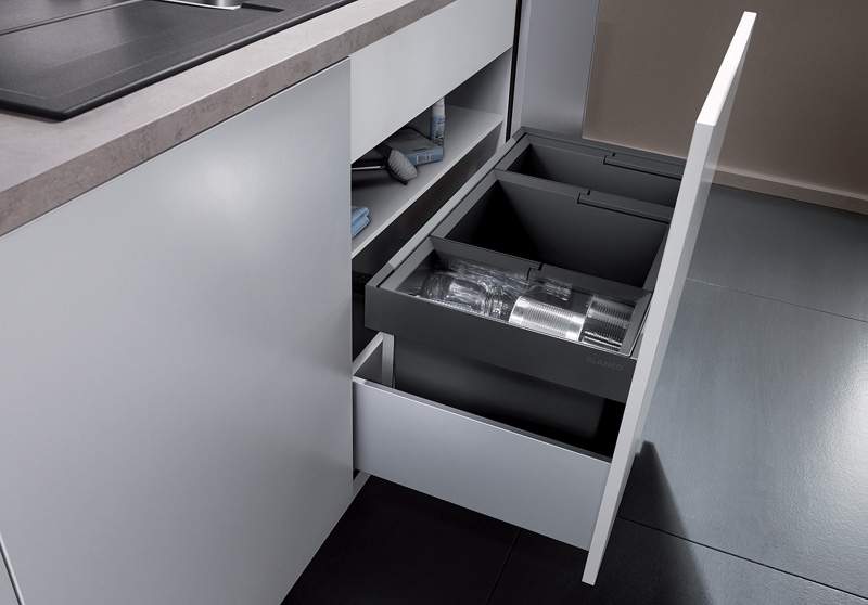 Beachten Sie bei der Planung die Einbauhöhe des Abfallsystems, Höhe des Schubkastenbodens, Einbautiefe der Spüle mit Ablaufgarnitur und das daraus resultierende Mindestmaß für den Unterschrank.