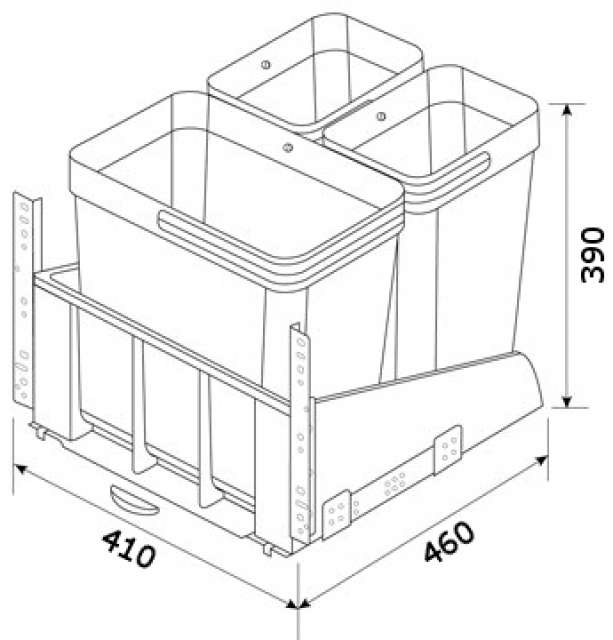 Abfallvolumen 34 Liter (2 x 8 L und 1 x 18 L)