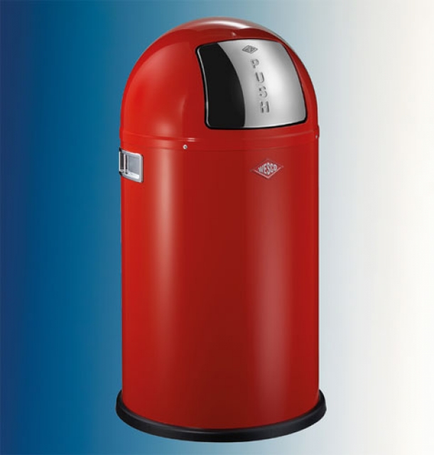 Abfallbehälter im klassischen Design, der sich nicht einfach in die Ecke schieben lässt.