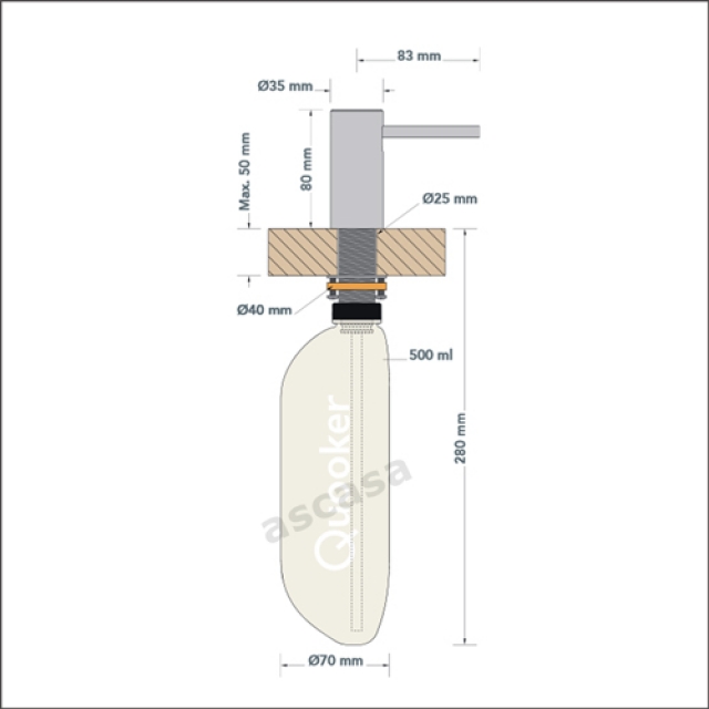 • Gesamthöhe des Seifenauslaufes:  80 mm