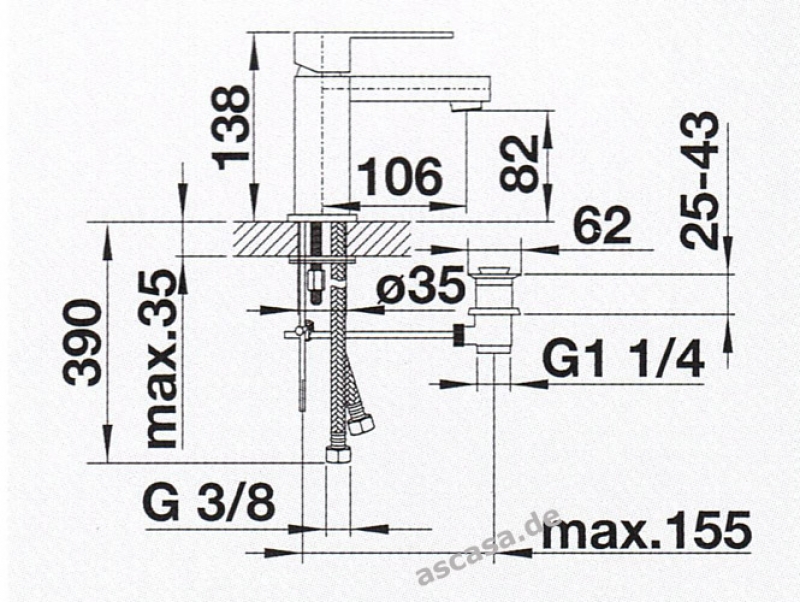 Hahnlochbohrung mit Ø 35 mm erforderlich