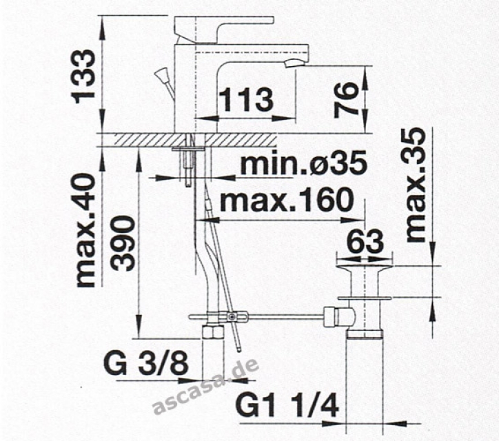Hahnlochbohrung mit Ø 35 mm erforderlich