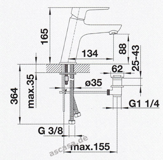 Hahnlochbohrung mit Ø 35 mm erforderlich