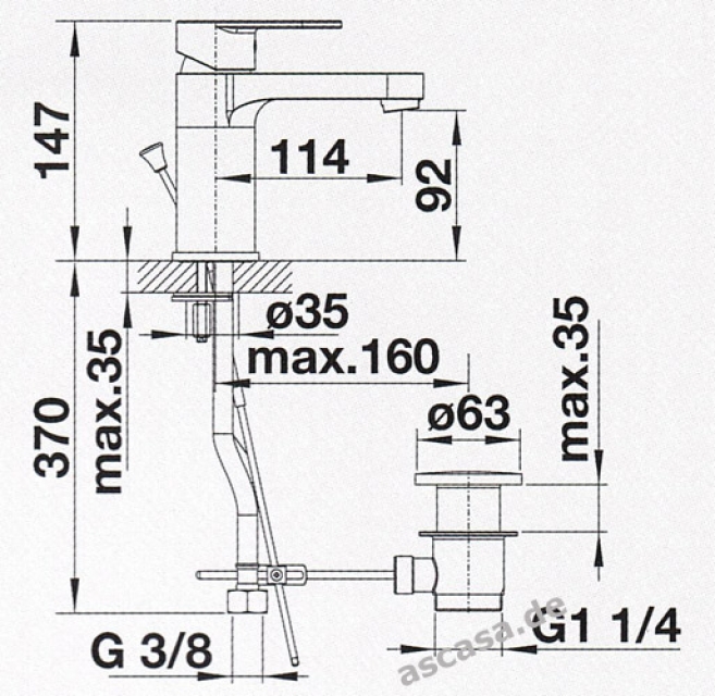 Hahnlochbohrung mit Ø 35 mm erforderlich