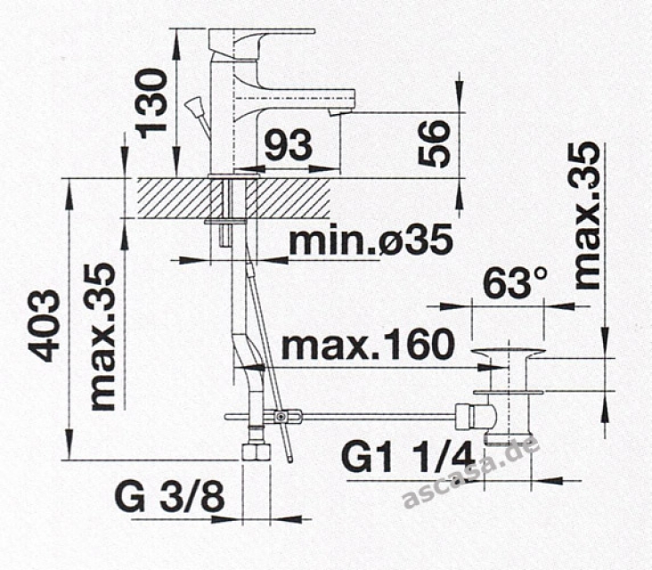 Hahnlochbohrung mit Ø 35 mm erforderlich