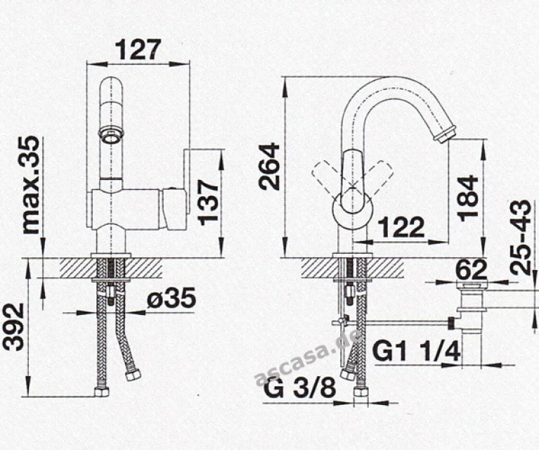 Hahnlochbohrung mit Ø 35 mm erforderlich