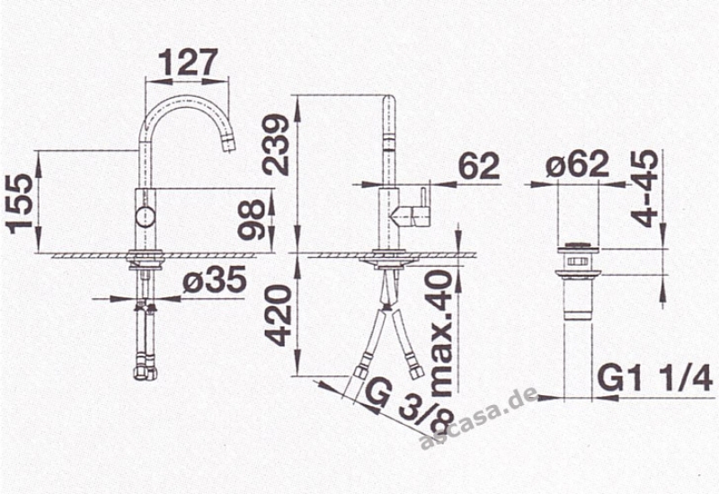 Hahnlochbohrung mit Ø 35 mm erforderlich