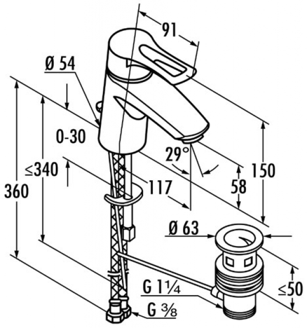 Waschtisch-Einhebelmischer mit Zugknopf-Ablaufgarnitur 1 1/4"