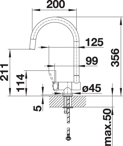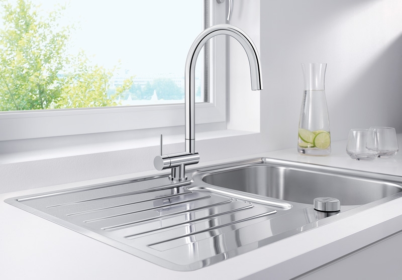 Optimale Bauhöhe ermöglicht komplettes Versenken des Auslaufs in das Becken