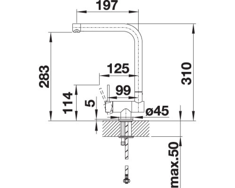 komplettes Versenken des Auslaufs in das Becken möglich