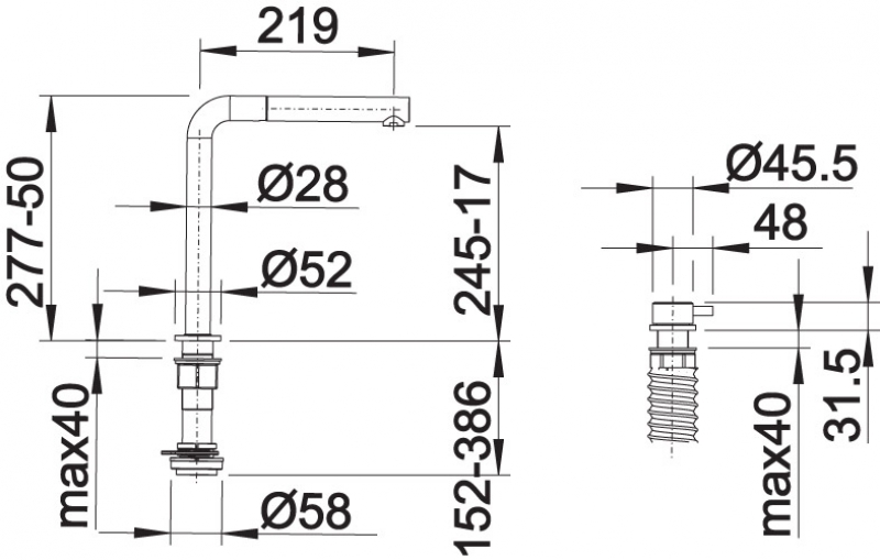 versenkbare Vor-Fensterarmatur, Hochdruck
