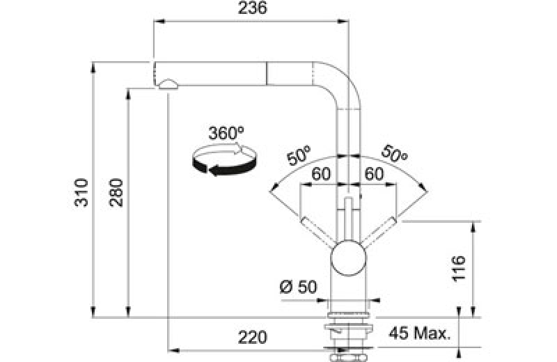 Einhebelmischer mit Zugauslauf (Zugauslaufkopf aus Edelstahl)