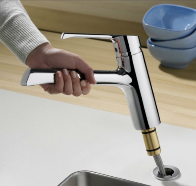 Einhebelmischer mit schwenkbarem Gussauslauf, Keramikkartusche und ECO-Funktion