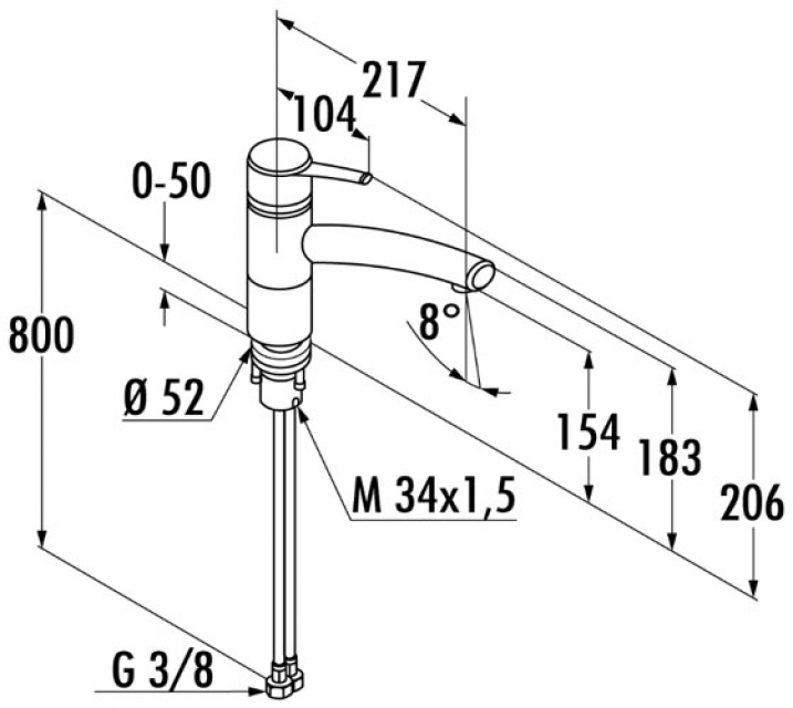 Einhebelmischer mit schwenkbarem Auslauf und Keramikkartusche, Bajonettverschluss
