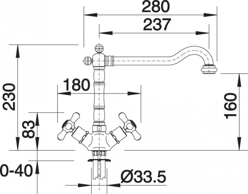 Hahnlochbohrung mit Ø 35 mm erforderlich