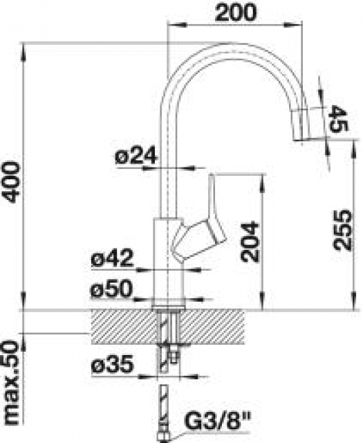 • Hahnlochbohrung mit Ø 35 mm erforderlich