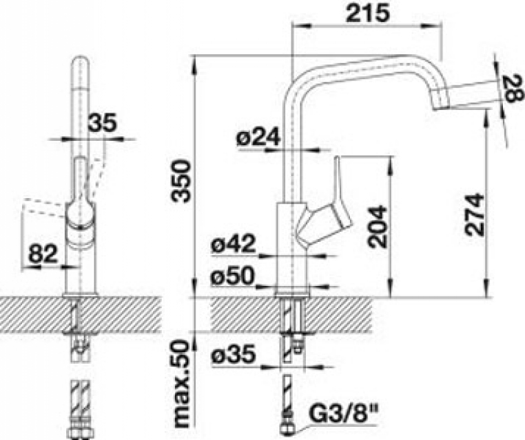 Hahnlochbohrung mit Ø 35 mm erforderlich