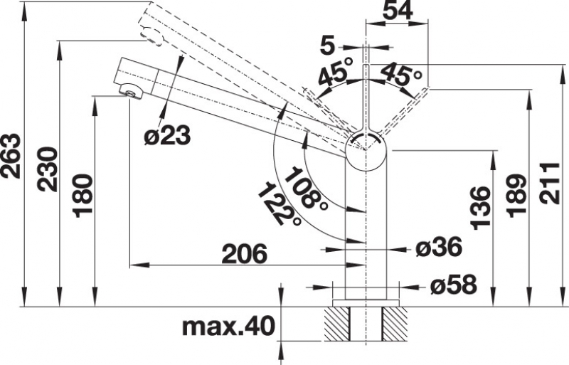 Stufenlos nach oben und unten schwenkbarer Auslauf ermöglicht ein einfacheres Befüllen hoher Gefäße