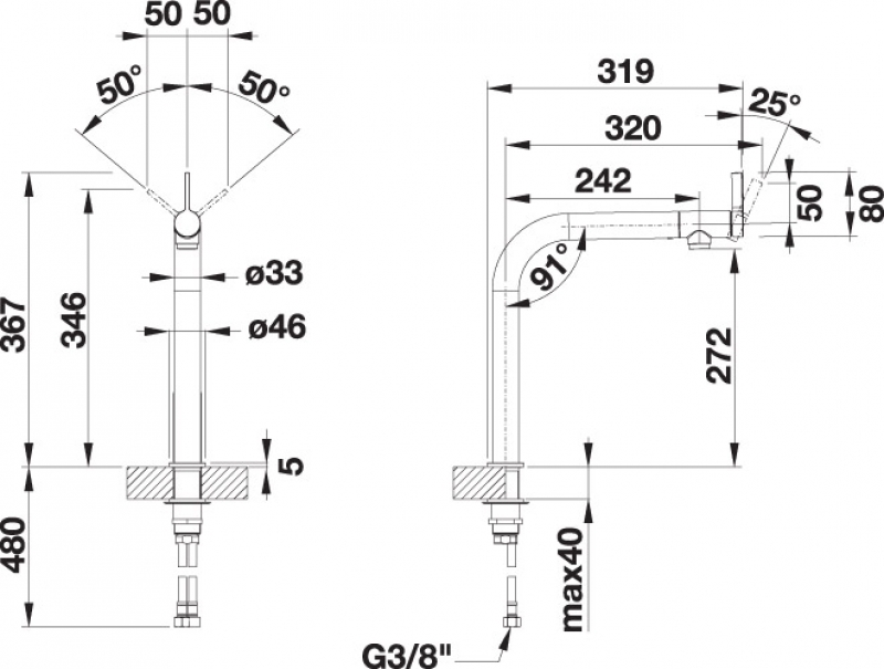 Hoher Auslauf für leichtes Befüllen von Töpfen und Vasen