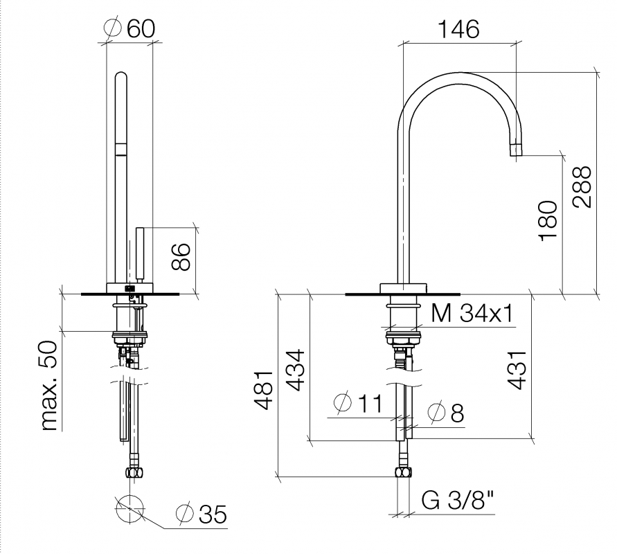• Armaturenhöhe 288 mm
