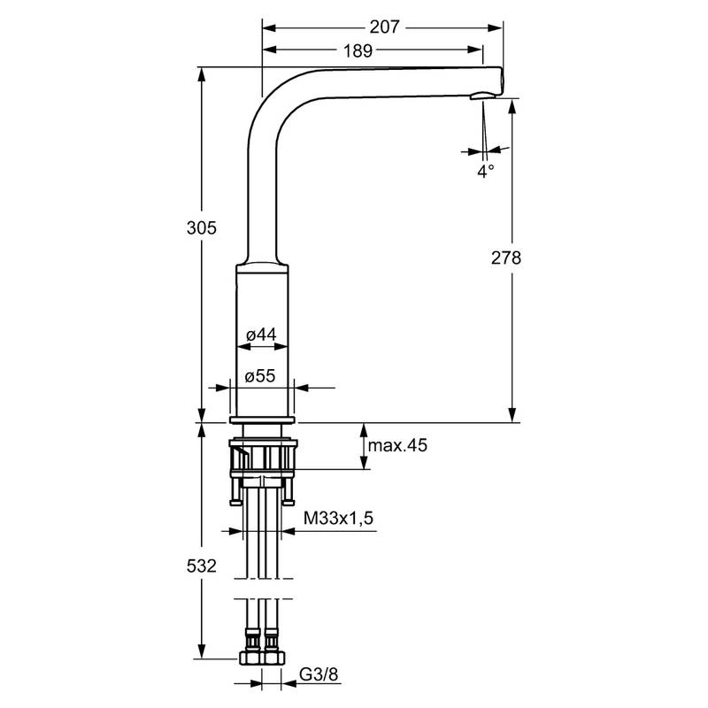 Einhebelmischer mit schwenkbarem Auslauf, seitlichen Hebel und Keramikkartusche