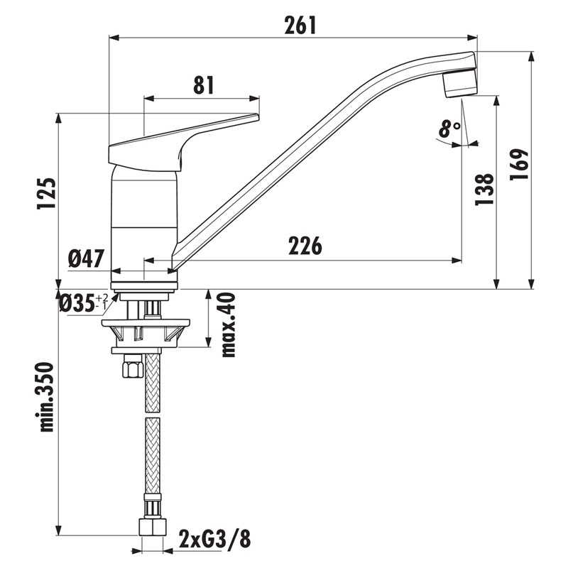 Einhebelmischer mit schwenkbarem Auslauf und Keramikkartusche