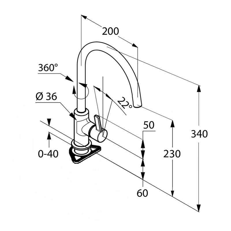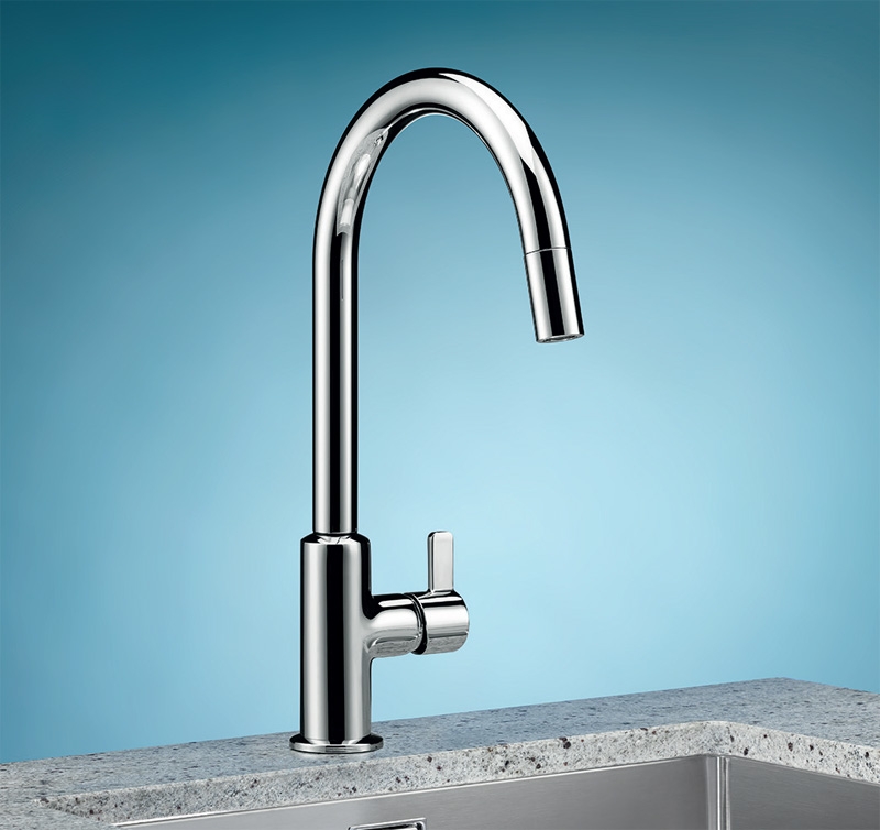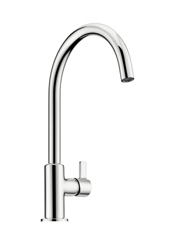 Einhebelmischer. Mit schwenkbarem Auslauf, seitlichem kurzem Hebel, Keramikkartusche und Laminarstrahlregler