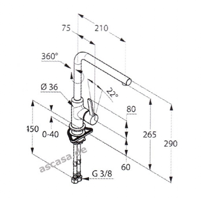 Einhebelmischer mit schwenkbarem Auslauf, seitlichem Hebel und Keramikkartusche