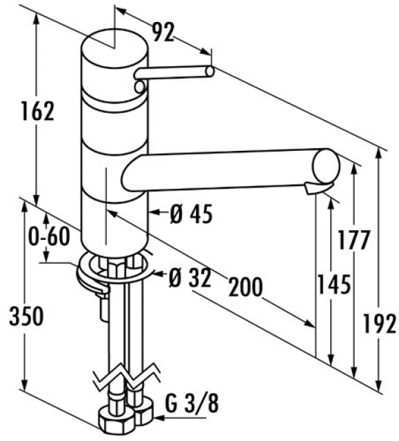 Einhebelmischer mit erhöhtem Sockel, schwenkbarem Auslauf und Keramikkartusche