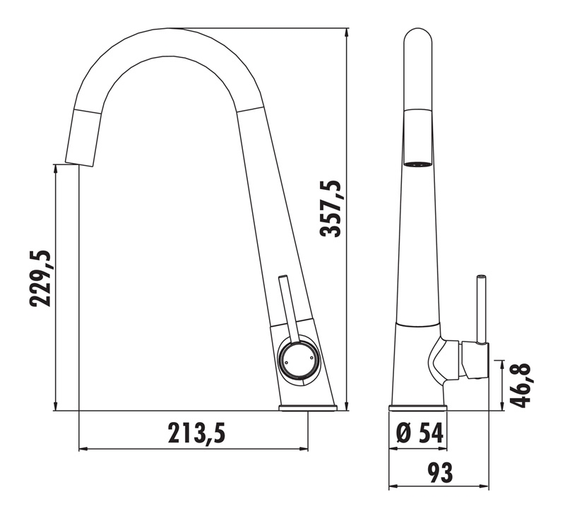 Einhebelmischer. Mit schwenkbarem Auslauf, seitlichem Hebel und Keramikkartusche