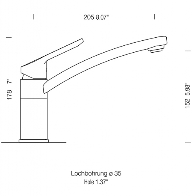 Gewinde der Anschlußmuffe für Kalt- und Warmwasser 3/8"