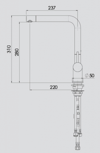 Systemceram KeraDomo LIVE, Einhebelmischer Festauslauf, Hochdruck, 10367, Farbe Edelstahlfinish