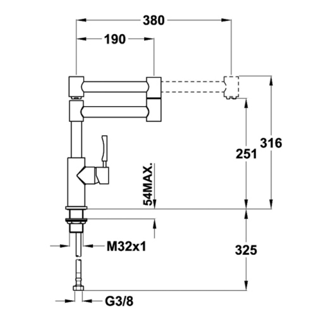 - Ausladung 380 mm/190 mm