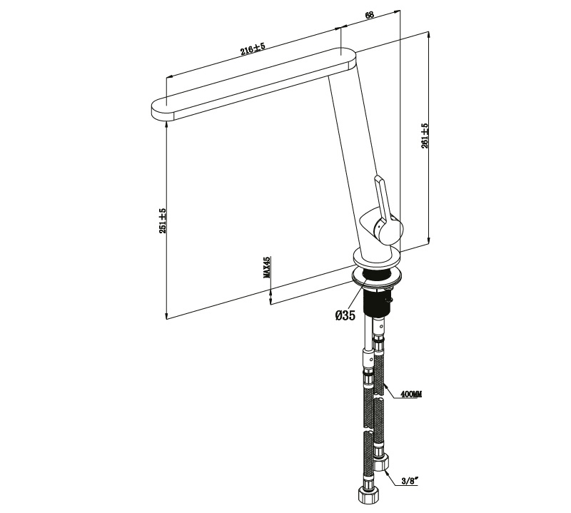 Villeroy & Boch Armatur Finera Slope Edelstahl massiv, Hochdruck Festauslauf, 927600LC