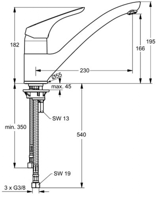 Ideal Standard CeraSprint 1, Festauslauf Niederdruck