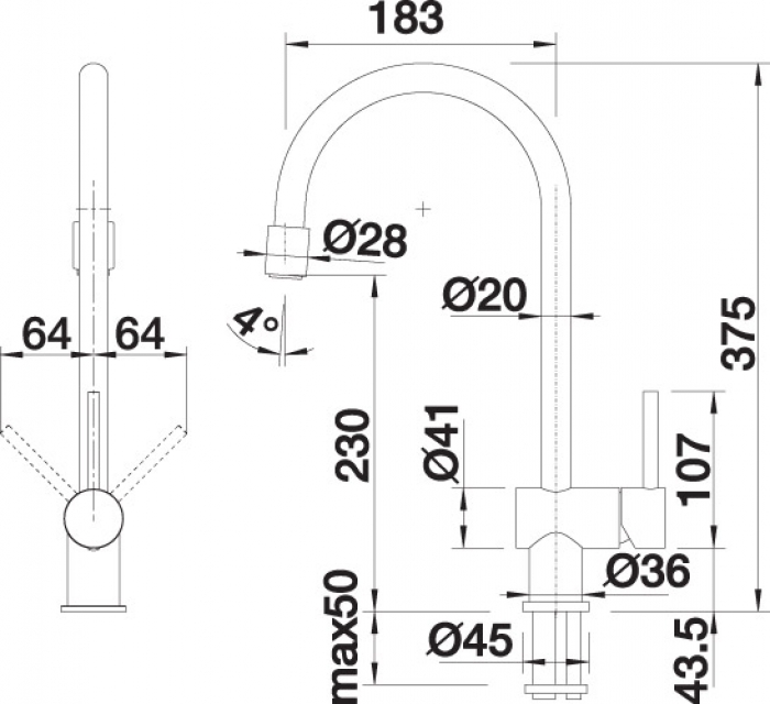 hoher Auslauf für leichtes Befüllen von Töpfen und Vasen