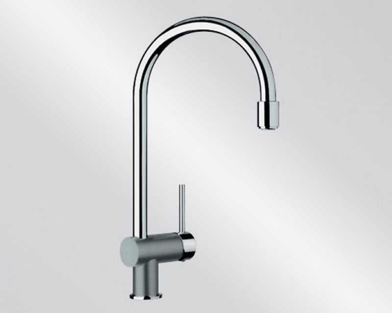 Die Armatur Blancofilo-S Silgranit-Look (zweifarbig) ist in den Farbvarianten "anthrazit/Edelstahlfinish", "felsgrau/chrom", "alumetallic/chrom", "siligranitweiß/Edelstahl finish", "jasmin/chrom", "champagner/chrom", "perlgrau/chrom", "tartufo/chrom", "muskat/chrom" und "cafe/chrom" erhältlich.