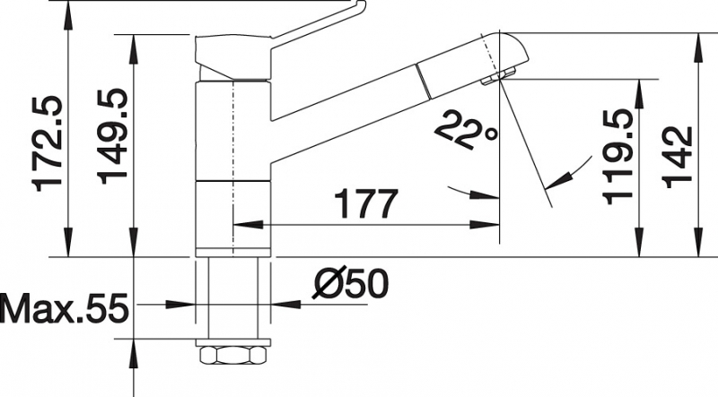 • Hahnlochbohrung mit Ø 35 mm erforderlich
