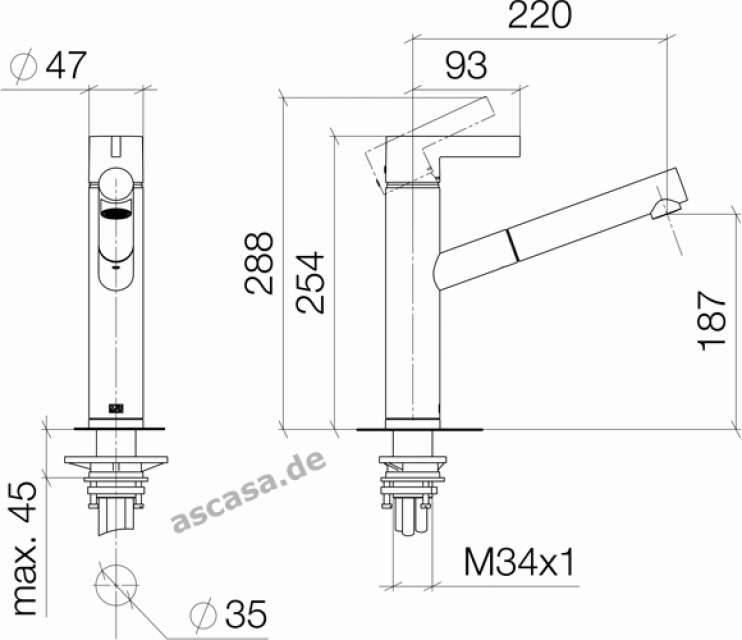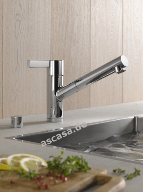 Neben der klassischen Einhebelmischer-Variante gibt es die Armatur Eno auch als Pullout-Armatur. Der Pull-out Wasserhahn Dornbracht Eno zeichnet sich durch das nach vorne herausziehbare Funktionselement aus und ist wahlweise mit einem herausziehbaren Auslauf oder einer herausziehbaren Brause erhältlich.