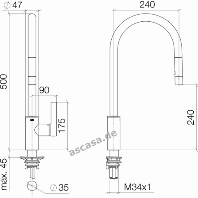 Ausstattung der Tara Ultra Pulldown-Armatur von Dornbracht: