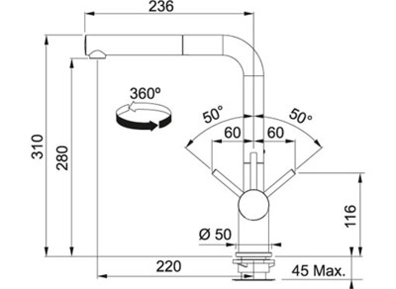 Einhebelmischer mit Zugauslauf (Zugauslauf-Kopf aus Metall)