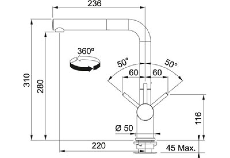 Einhebelmischer mit Zugauslauf (Zugauslauf-Kopf aus Metall)