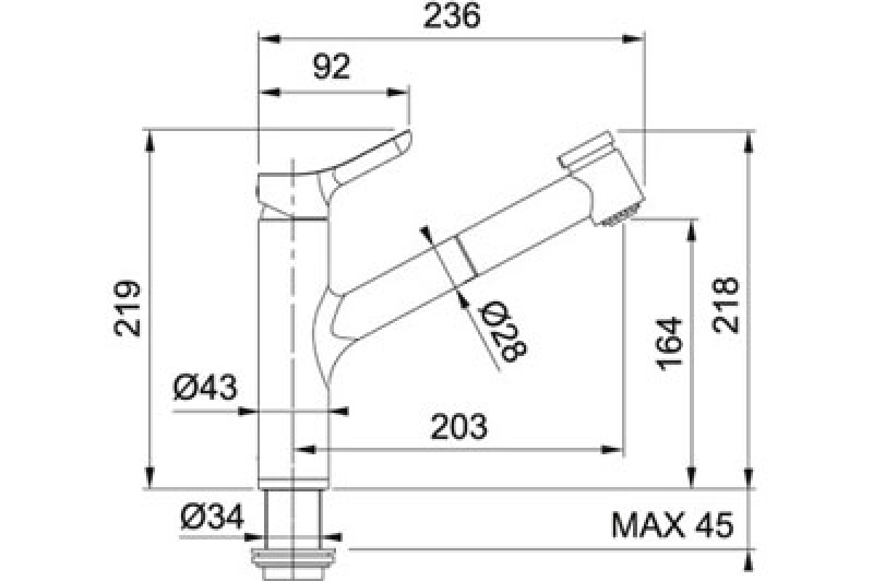 Einhebelmischer mit Zugauslauf (Kopfauslauf aus Kunststoff)
