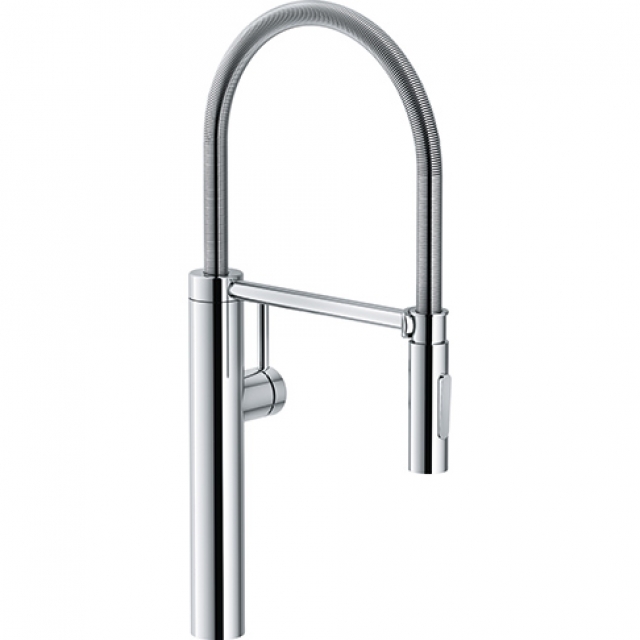 Franke Panera / Pescara XL Auszugsbrause, Chrom, Hochdruck, Schlauch mit Metallfeder, Wassersparfunktion, Schwenkbereich 360°