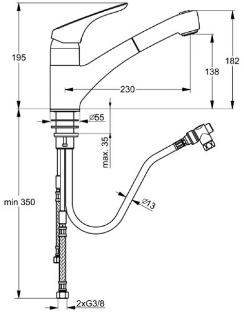 Einhebelmischer mit schwenk-/herausziehbarer Schlauchbrause (Strahl/Brause verstellbar) und Keramikkartusche