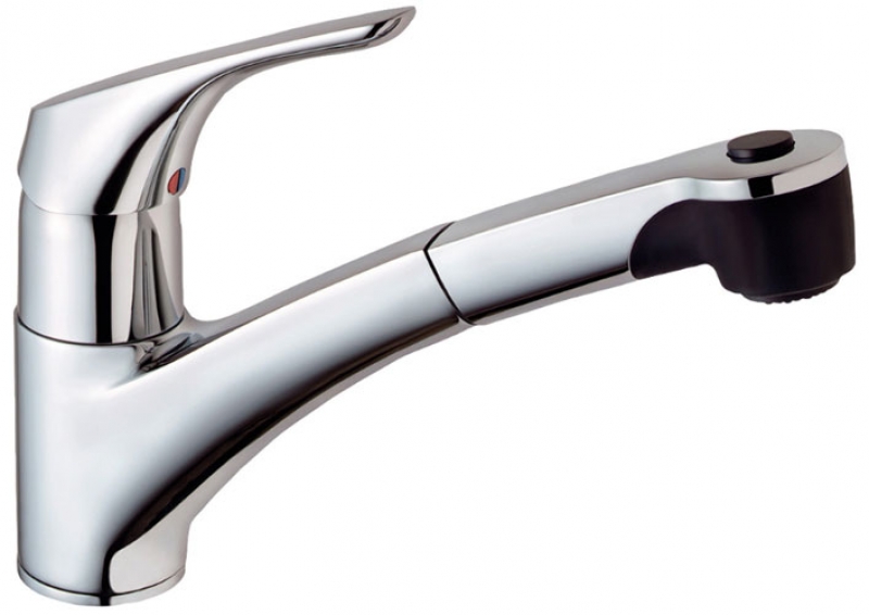 Einhebelmischer mit schwenk-/herausziehbarer Schlauchbrause (Strahl/Brause verstellbar) und Keramikkartusche