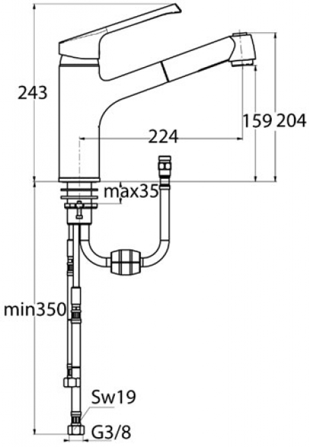 Einhebelmischer mit schwenk-/herausziehbarer Schlauchbrause, (Strahl/Brause umstellbar) Keramikkartusche und ECO-Funktion