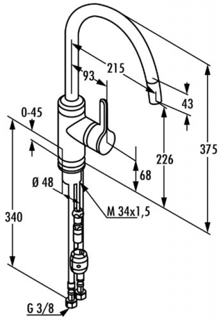 Einhebelmischer mit schwenk-/herausziehbarem Auslauf, seitlichem Hebel und Keramikkartusche